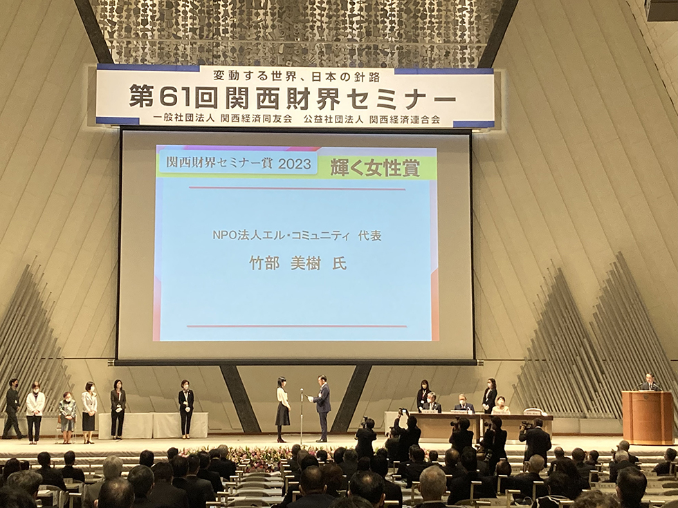 2023年2月10日に開催された第61回関西財界セミナー(主催:一般社団法人関西経済同友会、公益社団法人関西経済連合会)において、代表の竹部美樹が「関西財界セミナー賞2023『輝く女性賞』」を受賞いたしました。